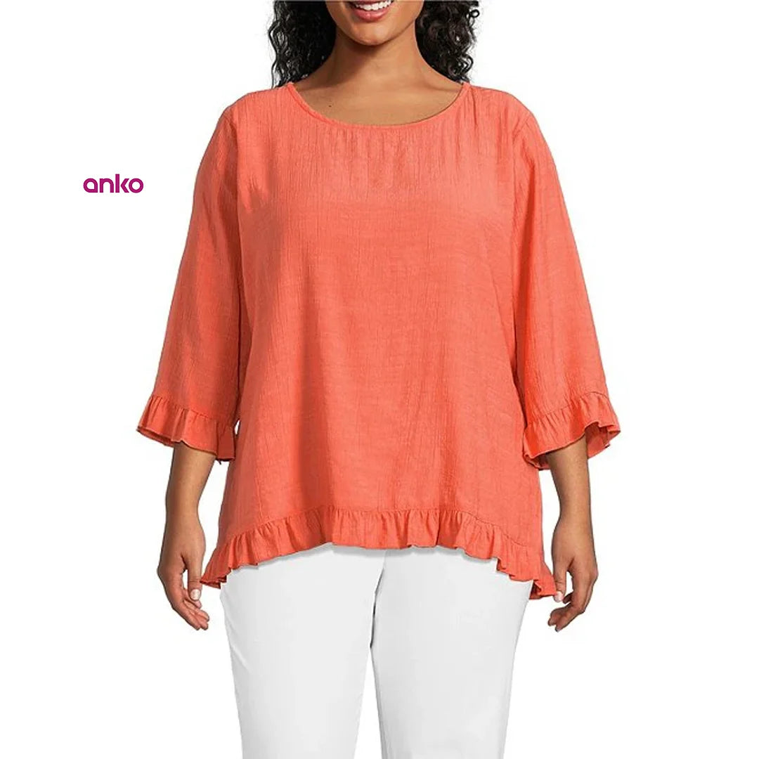 بلوزة نسائية مقاس بلس بأكمام 3/4 مع كشكش أنيق